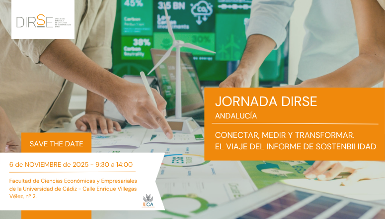 La delegación de DIRSE en Andalucía celebra su encuentro anual 2025. Titulada Jornada DIRSE Andalucía | Conectar, medir y transformar. El viaje del Informe de Sostenibilidad tendrá lugar el jueves, 6 de noviembre de 2025, en la Facultad de Ciencias Económicas y Empresariales de la Universidad de Cádiz. Este encuentro reunirá a expertos, empresas y entidades para compartir reflexiones y buenas prácticas en torno a la sostenibilidad y la elaboración de informes con impacto real.