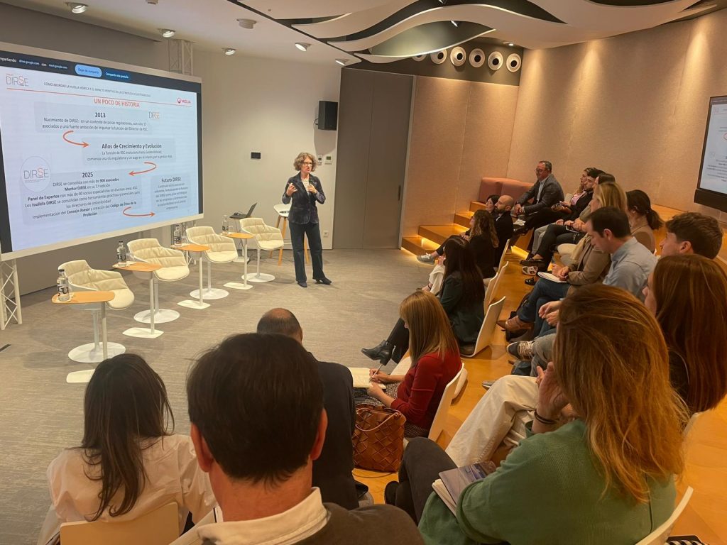 Durante el evento, una mesa redonda moderada por Pilar Codina, subdelegada de DIRSE en Cataluña y Corporate Sustainability Manager en Epson Ibérica, reunió a expertos como Clemente Vergara, responsable de Proyectos de Transición Ecológica en Veolia; Fernando Lázaro, director de Sostenibilidad y Nuevos Proyectos en Abadía Retuerta LeDomaine; y Daniel Bueno Rubio, Gestor de Financiación Sostenible en BBVA.