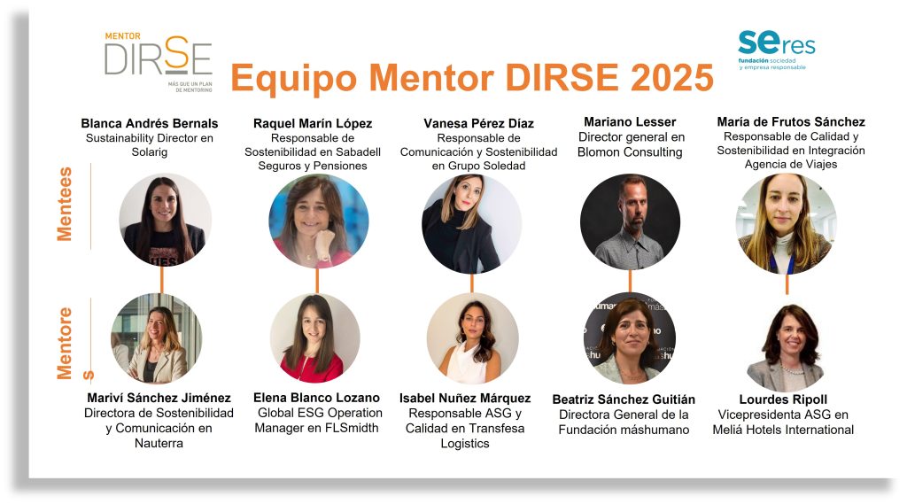 Mentor DIRSE es una iniciativa de DIRSE en colaboración con Fundación SERES, orientada a reforzar la función de sostenibilidad en las empresas españolas y apoyar el desarrollo de los futuros dirses.