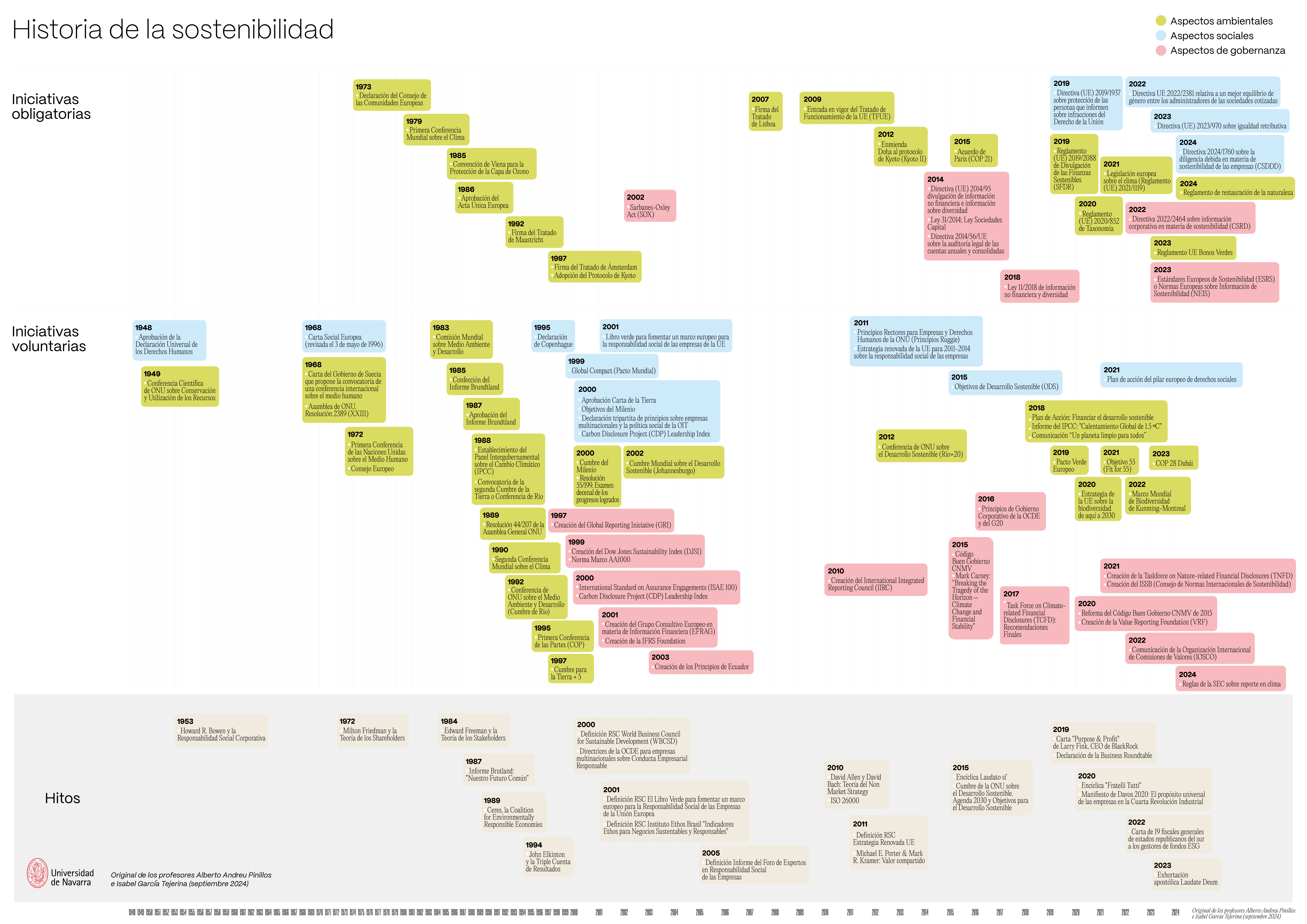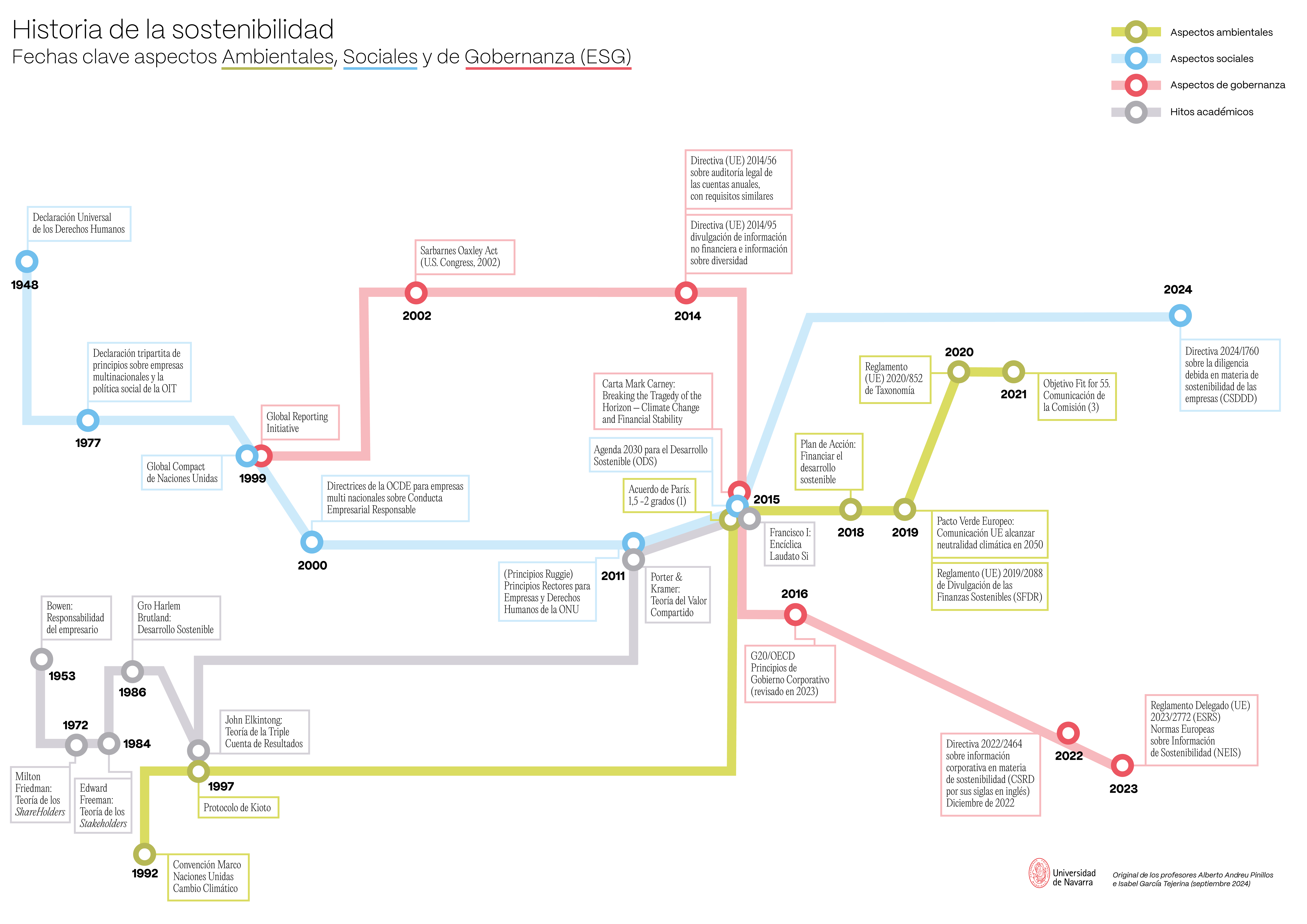 Conscientes de esta realidad, DIRSE mantiene un seguimiento continuo de los estudios e informes de mayor relevancia para los profesionales del ámbito ASG. Un ejemplo destacado es la monografía “Historia y Génesis de la Sostenibilidad”, publicada por el Máster en Sostenibilidad de la Universidad de Navarra. Escrita por los profesores Isabel García Tejerina y Alberto Andreu, esta obra analiza más de 100 instrumentos internacionales, abarcando un recorrido histórico desde 1948 hasta 2024. El documento ofrece una visión integral de los hitos y debates que han moldeado la sostenibilidad en las dimensiones ambiental, social y de gobernanza, convirtiéndose en una herramienta esencial para quienes buscan liderar con impacto positivo en sus organizaciones.
